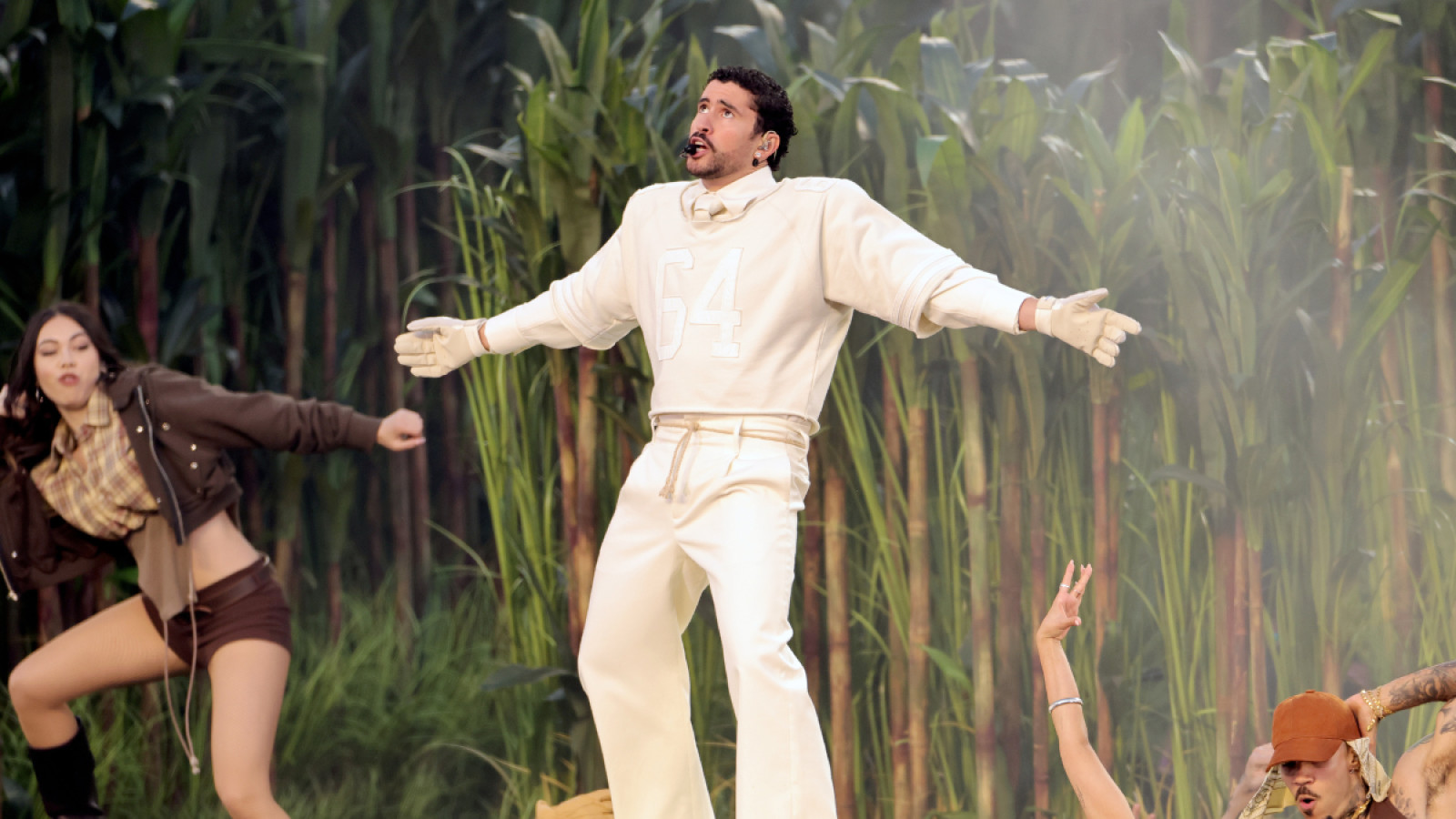Під час виступу Bad Bunny змінив образ, додавши кремовий двобортний піджак. У числі обраних ним аксесуарів були годинник Royal Oak від Audemars Piguet із малахітовим циферблатом і власні кросівки BadBo 1.0, створені у колаборації з Adidas. Їх офіційний реліз відбувся вже наступного дня після шоу.
