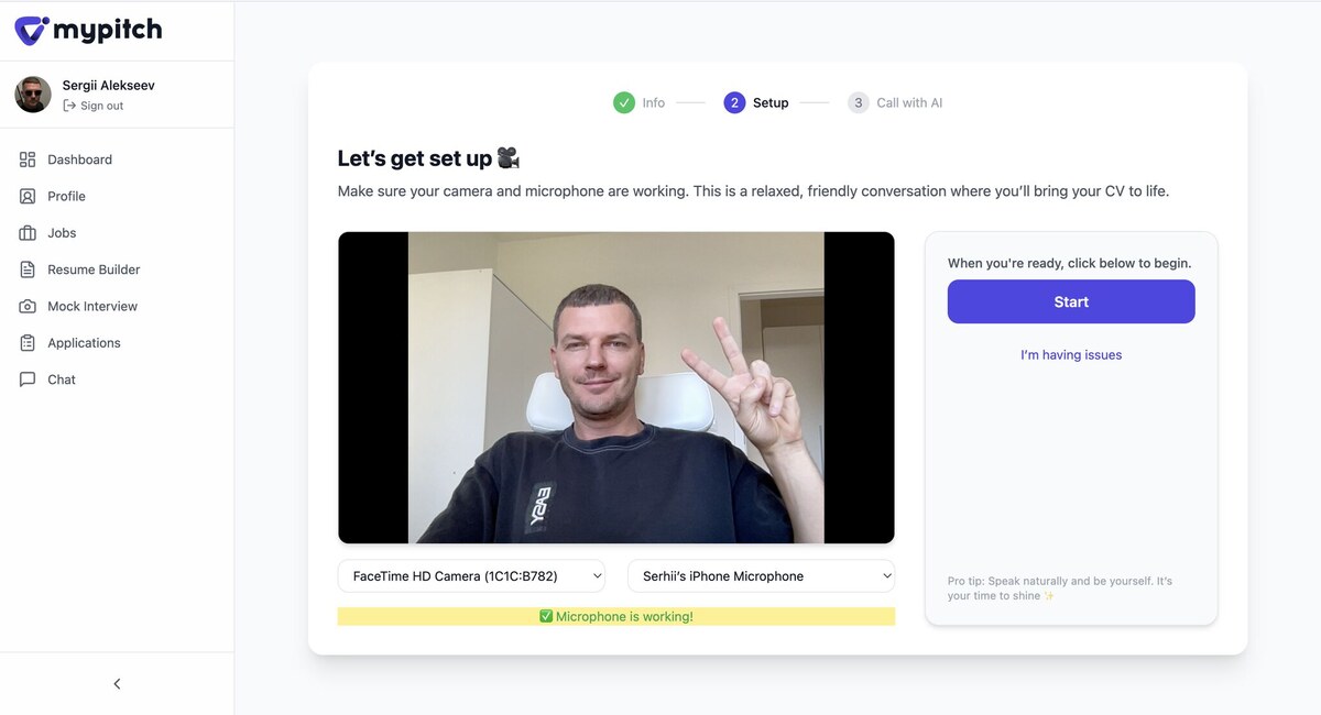 Тому я вирішив створити платформу, де кандидати мають можливість 15 хвилин розповісти про себе і поспілкуватися з компанією за допомогою ШІ. Без такого відеодзвінка кандидати не зможуть отримати максимальний рейтинг.