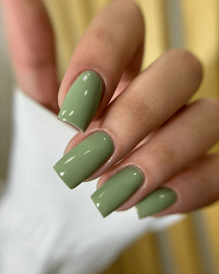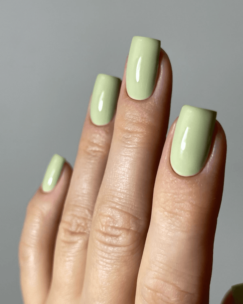 Зелений манікюр травень особливо гарний на короткій довжині. Він не виглядає надто активним, якщо обрати пастельну або пилову гаму. Для квадратної форми краще брати світліші тони, а для мигдалю можна спробувати глибшу шавлію.