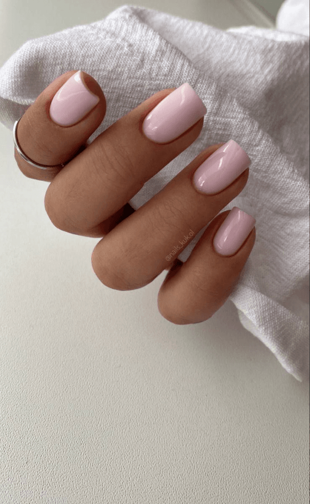 Коротким нігтям пасують молочний, нюдовий, блакитний, лимонний, рожевий jelly, лавандовий і м’який зелений. Такі відтінки роблять руки охайними й візуально не перевантажують нігтьову пластину.