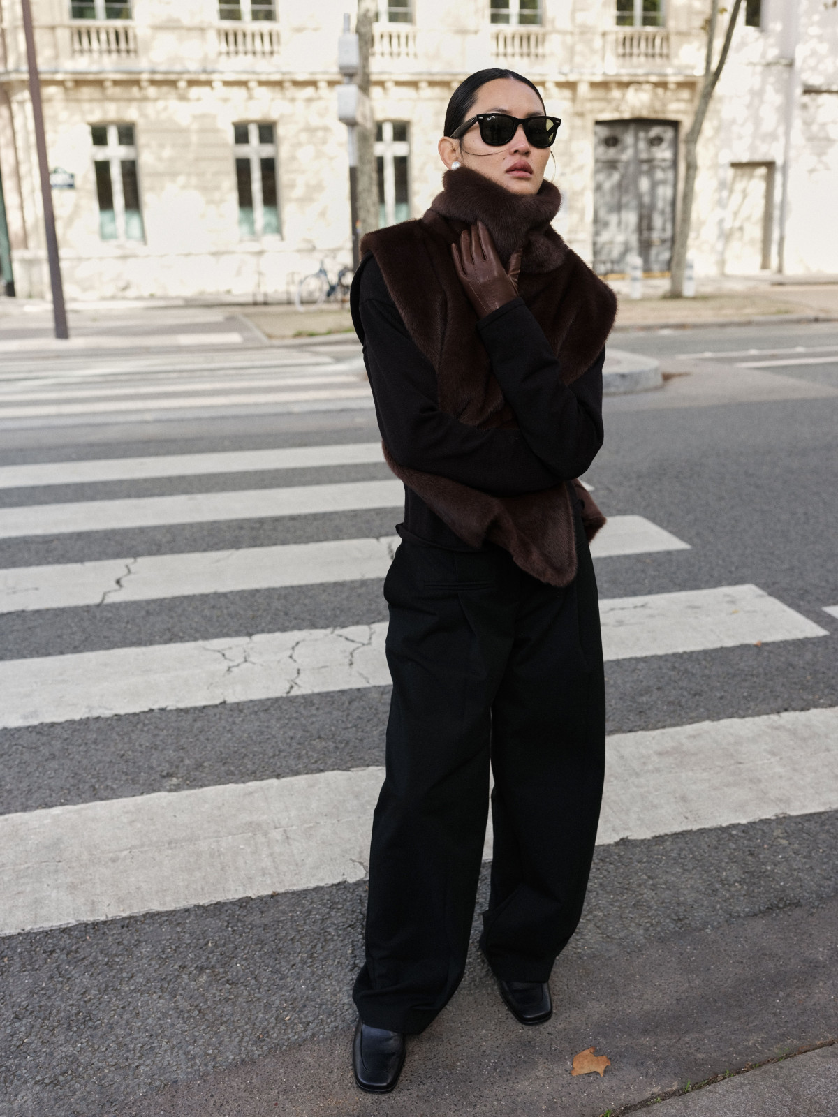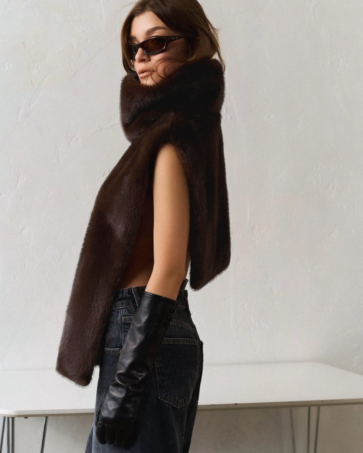 Хутряна манішка стала потужною стилістичною деталлю, що виконує роль центру композиції. Її розглядають не просто як стандартний аксесуар, а як statement piece, який формує настрій образу: