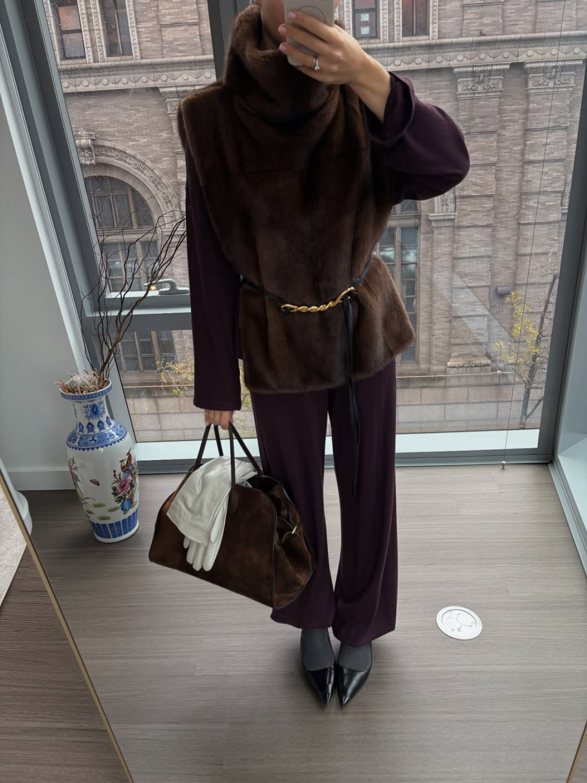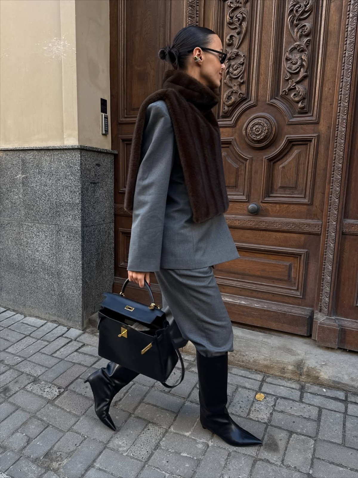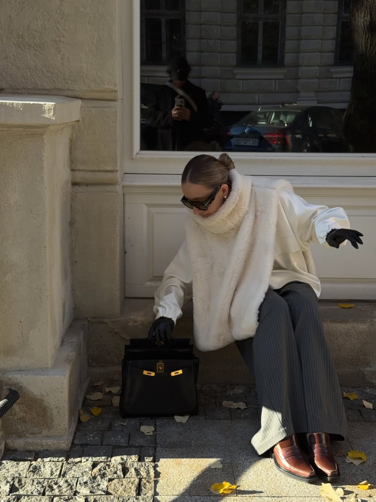 - З вовняним пальтом мінімалістичного крою або пуховиком — для створення графічності та розкішного акценту в портретній зоні.