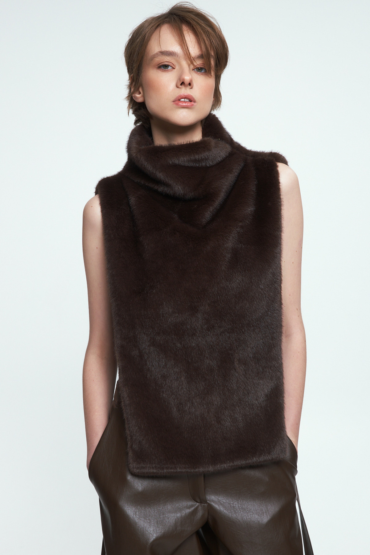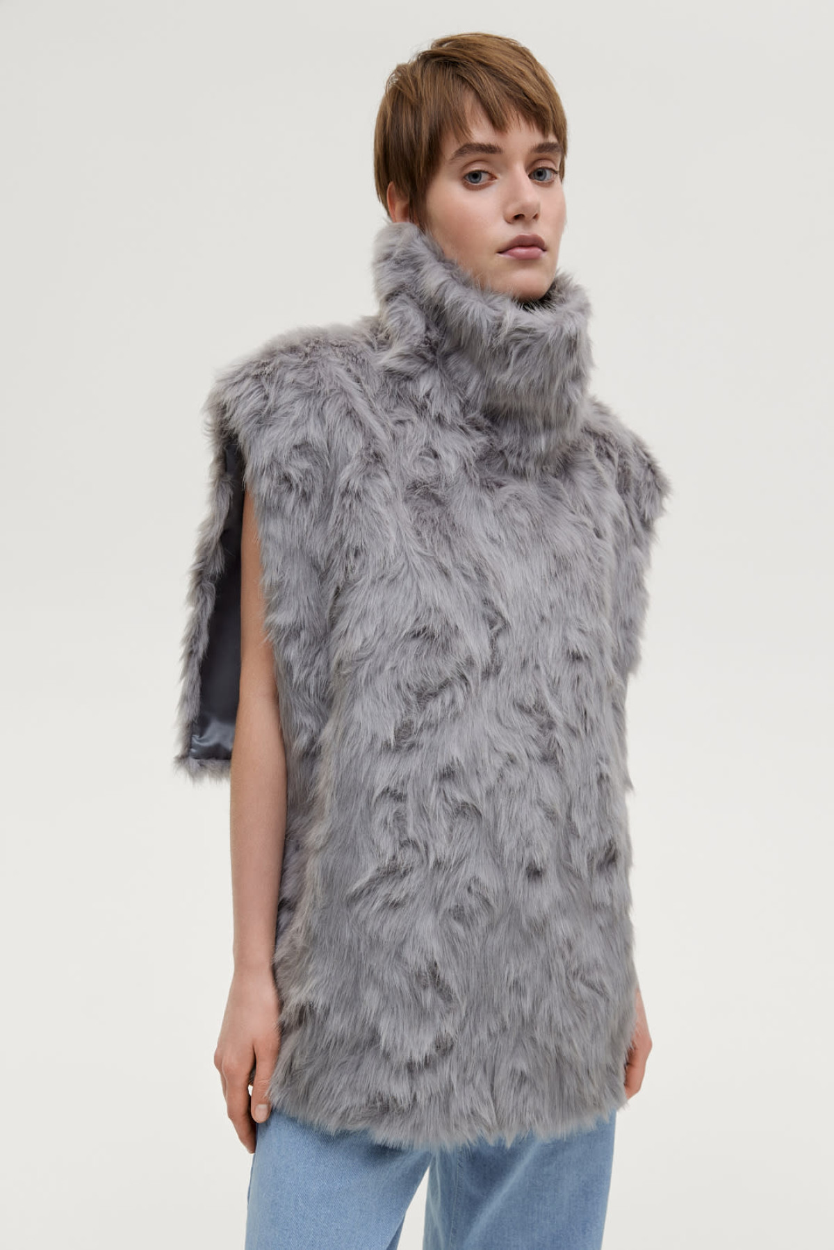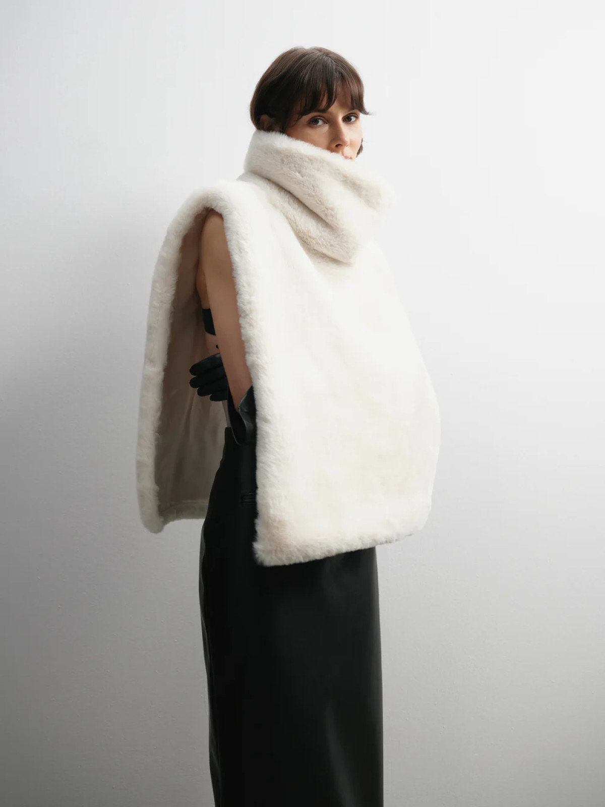 - Коротке штучне хутро — зі строгими формами та чіткою архітектурою силуету.