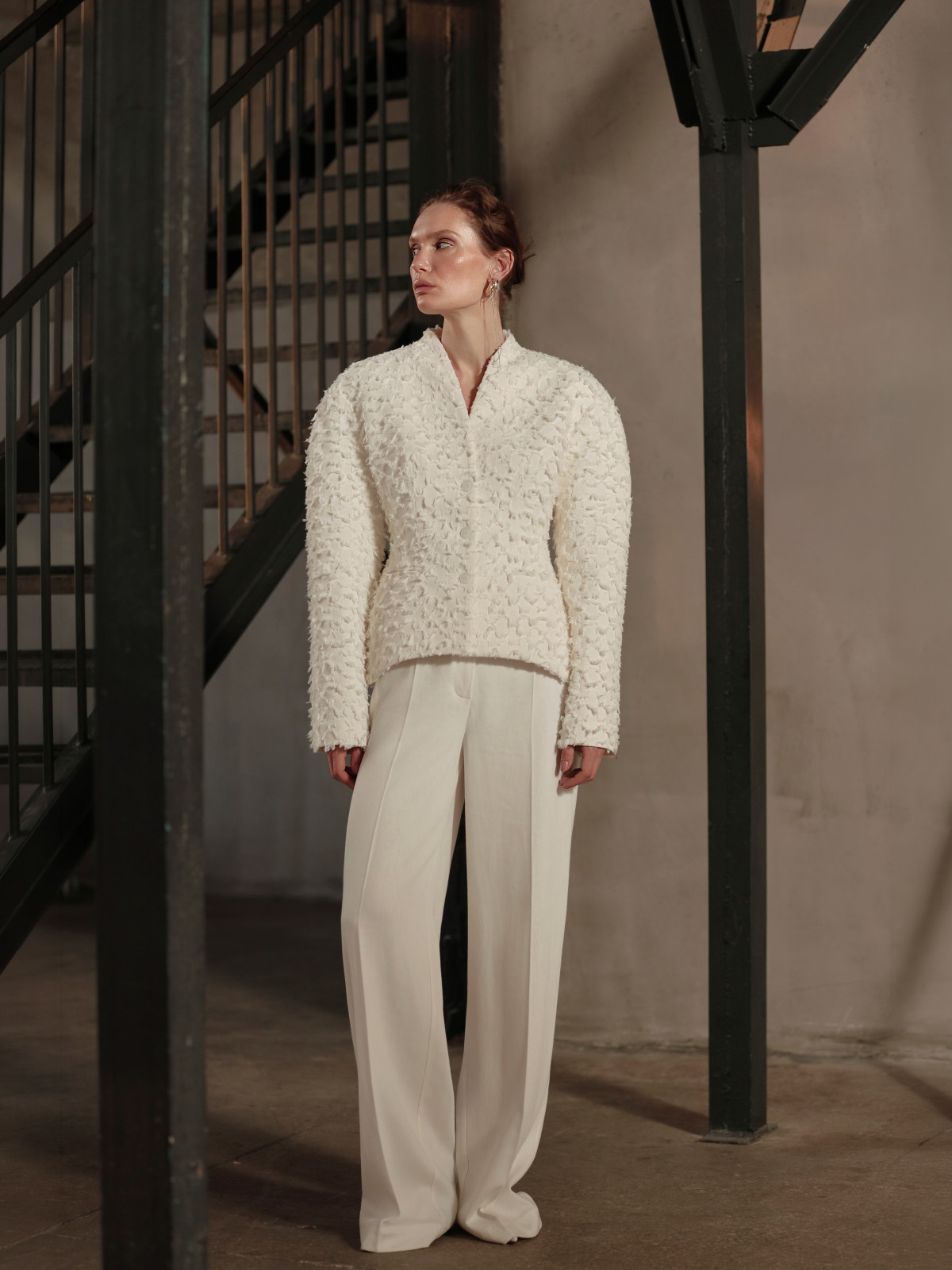 Обирає класичні силуети з великими кишенями й акцентними комірами, які органічно вписуються у будь-який стиль, забезпечуючи баланс між елегантністю та функціональністю. -