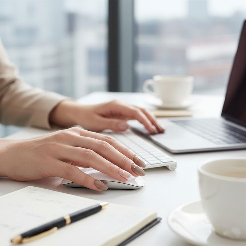 Відтінки бежевого, молочного, рожево-персикового — універсальні рішення для будь-якого робочого простору. Вони виглядають природно, освіжають руки та гармонійно поєднуються з різними стилями одягу.