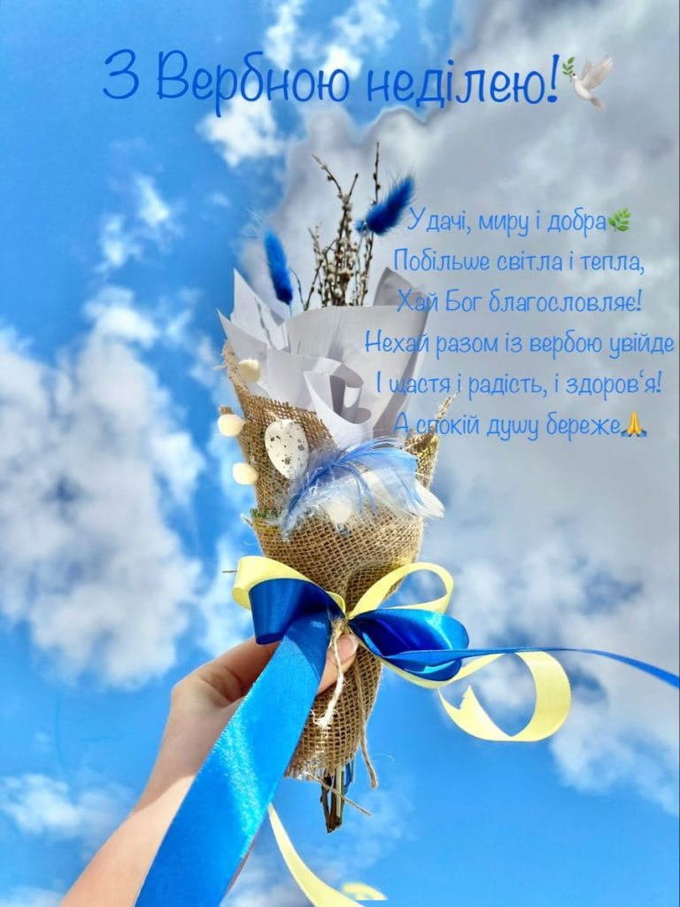 - Зі святом Вербної неділі. Бажаю благополуччя, душевного тепла, щирих усмішок і добрих новин щодня.