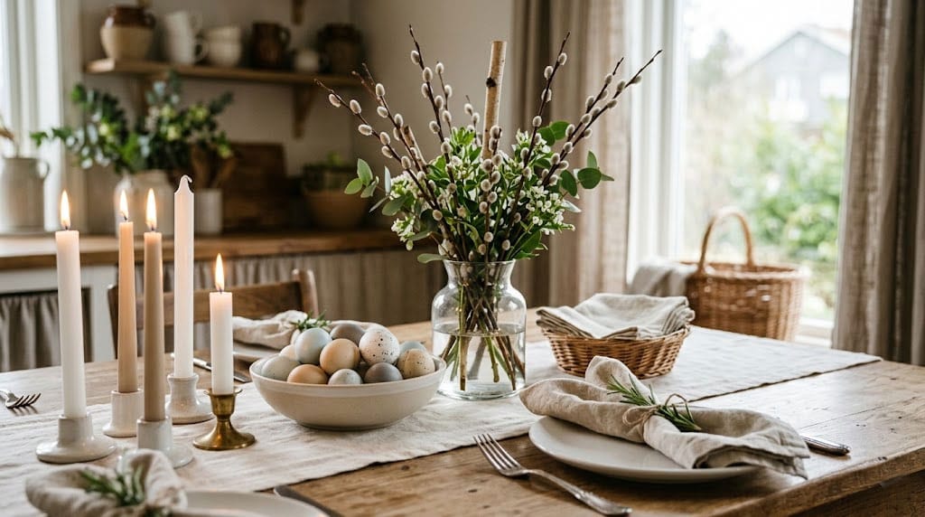 Коли я думаю про великодній декор дому, мені не хочеться починати зі списку дорогих покупок або бігти в магазин за новими наборами посуду. Найкраща атмосфера перед Великоднем народжується не з цінників, а з дрібниць, які вже є поруч. Саме тому швидкий великодній декор я завжди збираю з того, що можна знайти вдома, на кухні, у вазі, в коробці з текстилем або навіть під час короткої прогулянки.