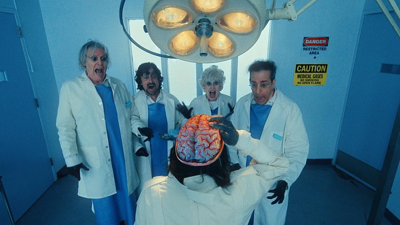 Під цей шмат шкіри можна було засунути руку чи ще щось, і під правильним ракурсом це виглядало б так, ніби ці дівчата зливаються одна в одну. На жаль, через обмежений час, ми не встигли зняти це так, як планували. Використали лише око, яке FKA Twigs ніби “вставляє”. Але добре, що ми використали хоч щось практично. Все інше зробили за допомогою візуальних ефектів.