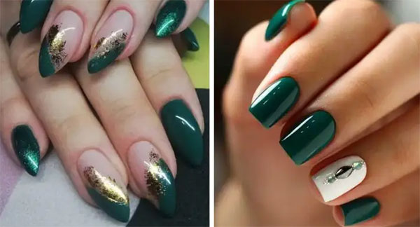 Насичений зелений колір може здатися несподіваним вибором, але він несе глибокі символічні значення. Згідно з китайською філософією, смарагдовий відтінок асоціюється з гармонією, достатком і стабільністю. Виконуючи манікюр у цьому кольорі, можна прагнути до злагоди і матеріального благополуччя у новому році. Смарагдовий дизайн виглядає розкішно і по-святковому, а глітер цього відтінку посилить ефект мерехтіння. Для тих, хто не хоче насиченої зелені, чудовим варіантом стане нюдовий або молочний манікюр з зеленими акцентами, наприклад, у вигляді ялинкових гілочок на одному або двох ногтях. Це створить гармонійний і святковий образ.