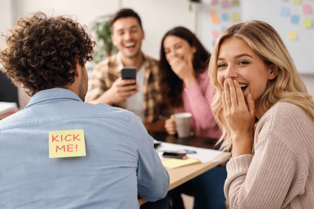 Для колег підійдуть нейтральні офісні жарти, які не стосуються грошей, звільнення, дедлайнів або здоров’я. Добре працюють стікери, кумедні таблички, смішний фон на екрані або безпечні жарти біля робочого місця.